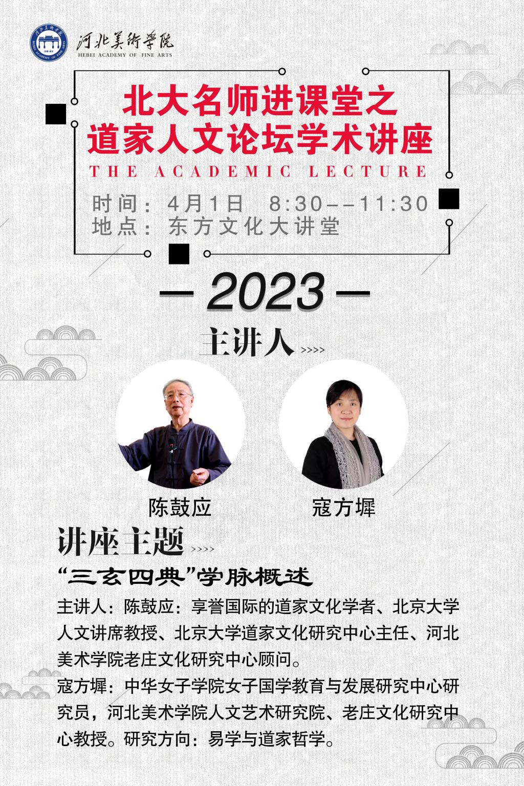 4月1日、2日,陈鼓应先生将携学术团队莅临beat365官网,围绕《老子》、《庄子》、《周易》等经典文献,举办两天四场的系列学术讲座。陈鼓应先生是享誉国际的道家文化学者、北京大学人文讲席教授、北京大学道家文化研究中心主任,也是beat365在线体育官网登录入口老庄文化研究中心的特别顾问。beat365官网举办的道家人文论坛学术讲座(前身是东方文化大讲坛)起始于2013年。在陈鼓应先生的关怀下,每学期都从北京大学...