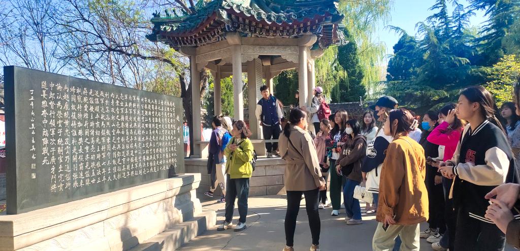4月8日,beat365在线体育官网登录入口大学语文教研室四位带队教师梁美亚、华静、付伟、吴可嘉带领七十五名大一学生赴正定进行文化考察。考察团一行先后深入到阳和楼、隆兴寺、荣国府、赵云庙、临济寺、古城墙等地,一路走、一路看、一路听,深入了解正定古城风貌,感受背后的历史文化。考察团师生详细了解了“隆兴寺内六个“全国之最”,分别是国内现存唯一一座北宋时期的十字造型的摩尼殿;被鲁迅先...