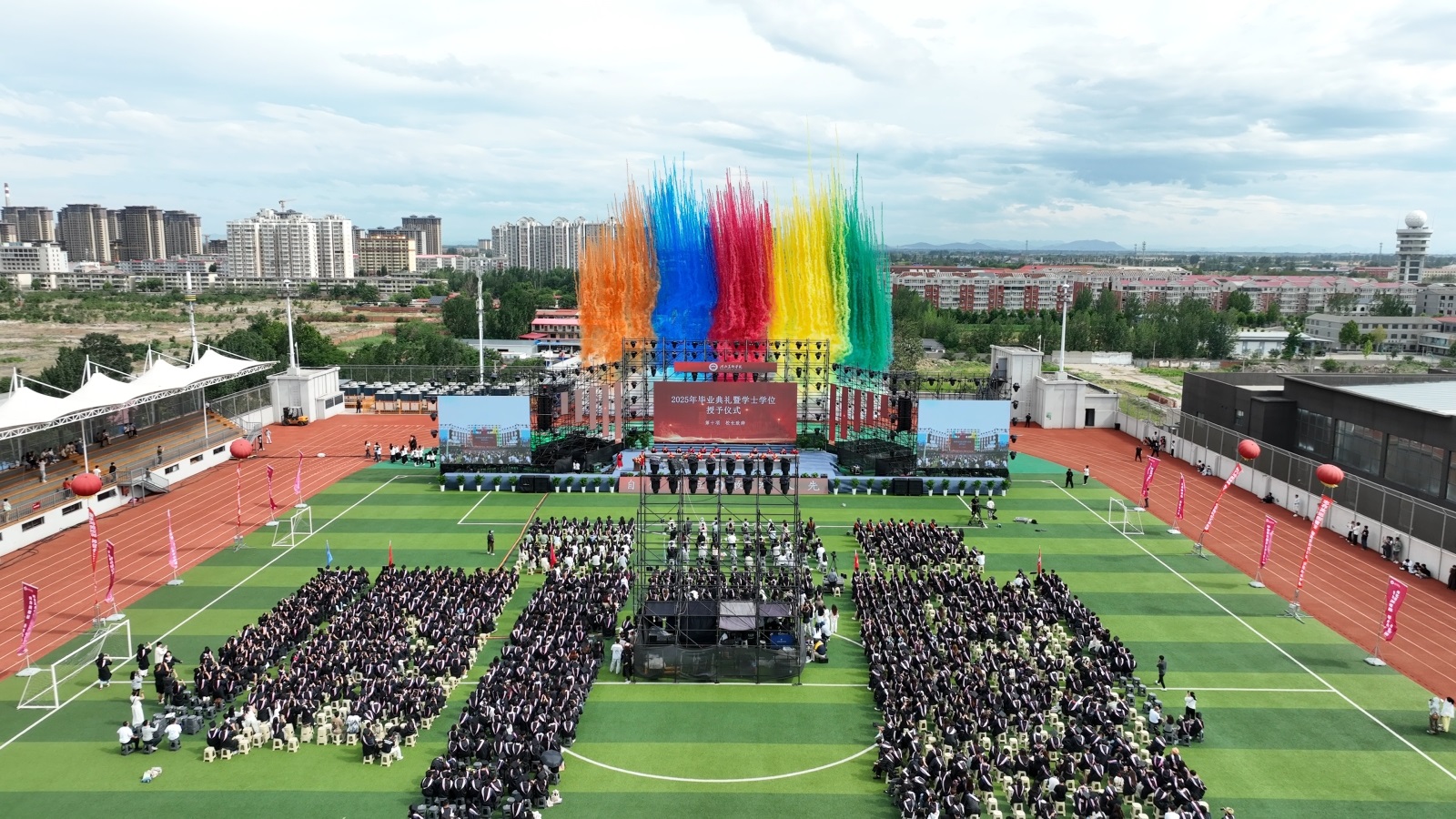 6月16日上午,beat365在线体育官网登录入口2025年毕业典礼暨学士学位授予仪式在操场举行。校领导甄忠义、裴红彬、甄墨、张建敏、张子言、甄心恒、孙志强、麻立峰、刘云昊,各部门负责人,教师代表、家长代表、校友代表及2025届毕业生齐聚一堂,共同见证这一重要时刻。典礼由学生工作处处长周文静主持。典礼在庄严的国歌声中拉开序幕。常务副校长张建敏宣读《beat365在线体育官网登录入口关于准予2025届7094名普通全日...