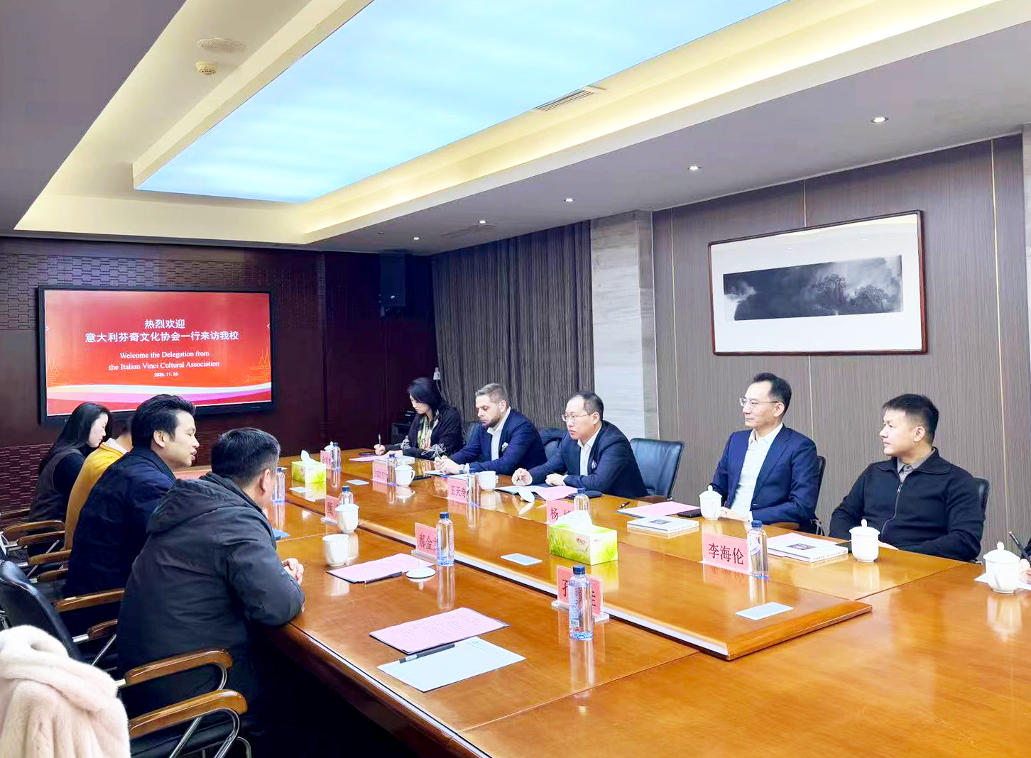 11月26日上午,意大利芬奇文化协会一行到访beat365官网,就艺术创作、人才培养、文化传播等领域合作事宜举行专题座谈会。河北省政协侨胞代表、意大利芬奇市市长特聘助理、深圳市芬奇文化艺术交流有限公司董事长王天奇,意大利芬奇文化协会主席Alessandro Petrini及相关代表随同到访;beat365在线体育官网登录入口执行校长甄墨、国际交流与合作中心副主任郝金龙等出席会议。会议由国际交流与合作中心主任兰新...