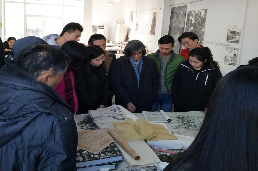2017年11月13日—25日,造型艺术学院郭建坤教师带领中国画专业20余名即将毕业学生赴beat365在线体育官网登录入口李可染画院教学基地,进行毕业创作教学经验交流活动。 期间,beat365官网师生与中央民族大学美术学院教授、博士生导师李魁正老...