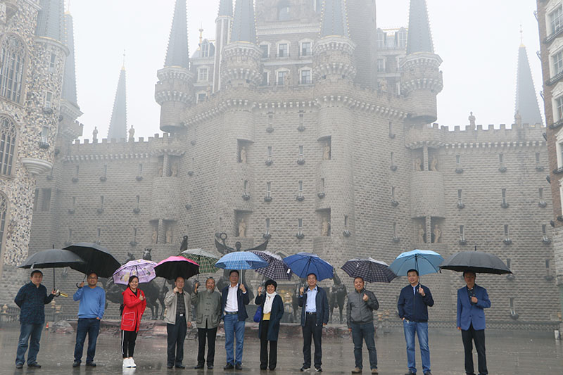 廷山副厅长一行与校领导在城堡前雨中合影 |