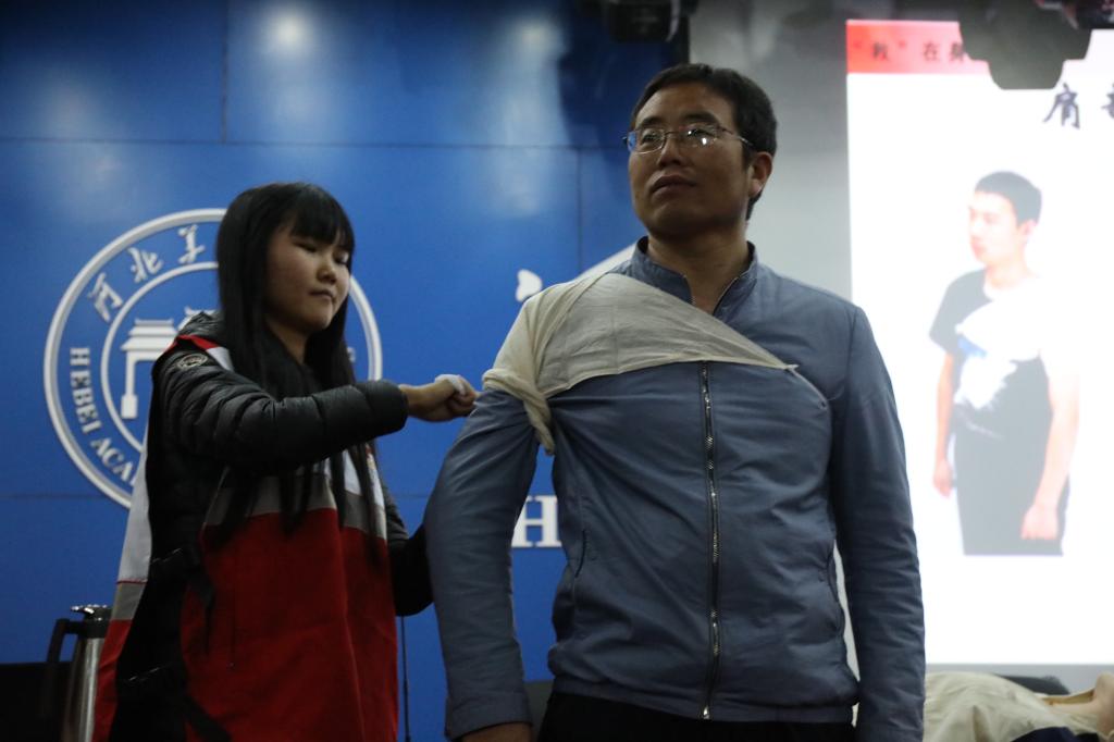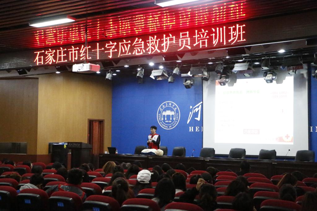 10月15日,校长办公室副主任鄂华威主持开班仪式,石家庄市红十字会培训中心讲师梁大伟负责理论培训,授课内容涵盖救护基本知识、心肺复苏、创伤救护等初级应急救护的知识与技能,常见急症、意外伤害、突发事件的处置方法等,教学的针对性、实用性非常强。