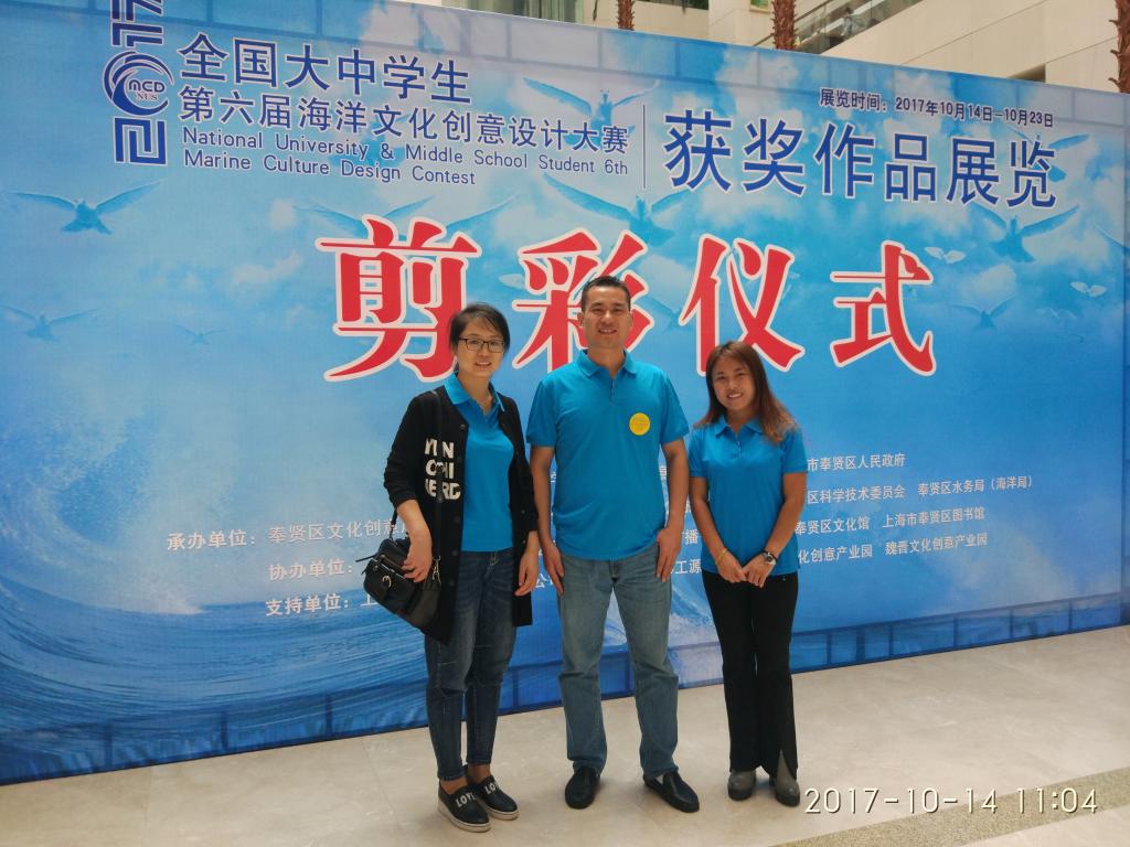 2017年10月14日全国大学生第六届海洋文化创意设计大赛获奖作品颁奖典礼暨获奖作品展在上海市奉贤区隆重开幕。beat365官网传媒学院荣获此次大赛的优秀组织单位奖,并受邀参加大赛颁奖典礼暨2017“智慧海洋”大家谈暨创意设计论坛。