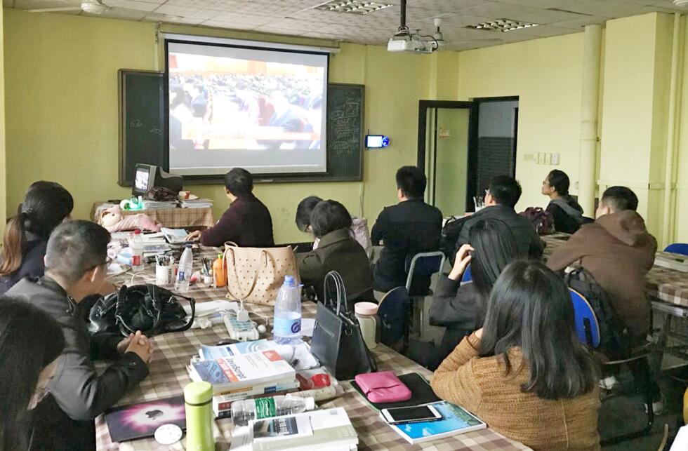 党的十九大是我们党在全面建成小康社会决胜阶段、中国特色社会主义关键时期召开的一次重要的大会,是全党全军全国各族人民政治生活中的大事。在观看直播现场,广大师生边看边做好记录,不时以热烈的掌声、欢呼声回应大会精彩报告。