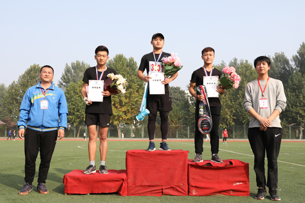 公共课部齐瑞明主任担任总裁判长,为获奖个人和团体颁奖并致辞。他表示,本次运动会是历届运动会中参赛人员最多的一届,运动员成绩突出,女子200米、男子3000米等多个项目破校纪录。