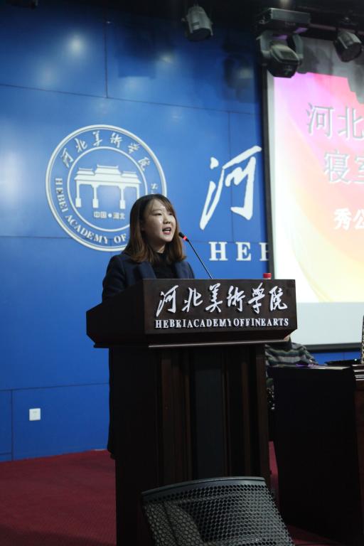 服装学院刘艺欣同学代表全体河美学子,表达了投身寝室文化建设,创建和谐家园的决心。