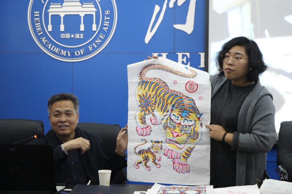 2017年11月2日下午,国家非物质文化遗产—武强年画传承人马习钦老师来到环境艺术学院进行非遗进校园活动。