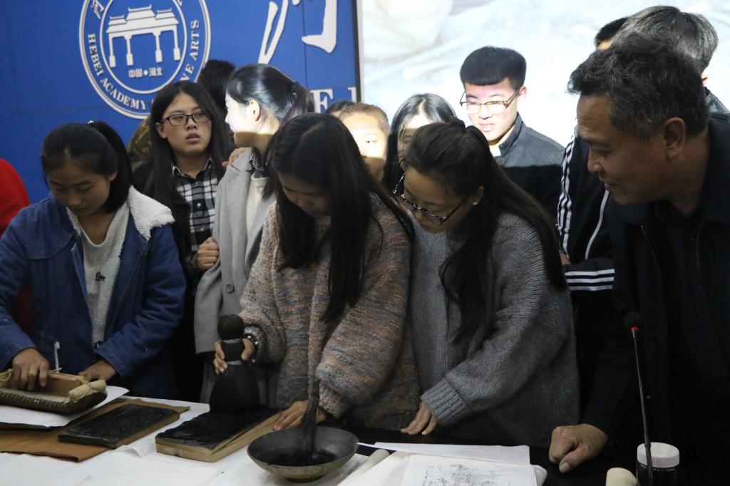 beat365官网一直努力促进传统艺术形式在高校的传播,让同学们接受传统文化文化的熏陶。马习钦老师为师生讲解了武强木板年画的传承、特点、制作过程。师生动手制作体验了木板年画的印制流程。