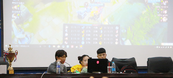 11月11日早上8点,选手们在正成国际报告厅进行16进8、8进4环节比拼。报告厅里传媒学院大一学生担任解说员,为观众实时解说比赛状况,为本次活动增加了亮点。