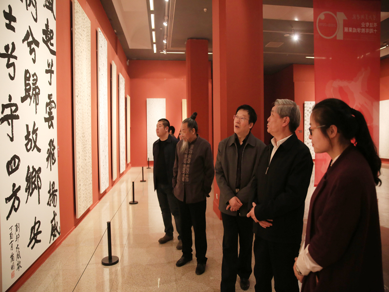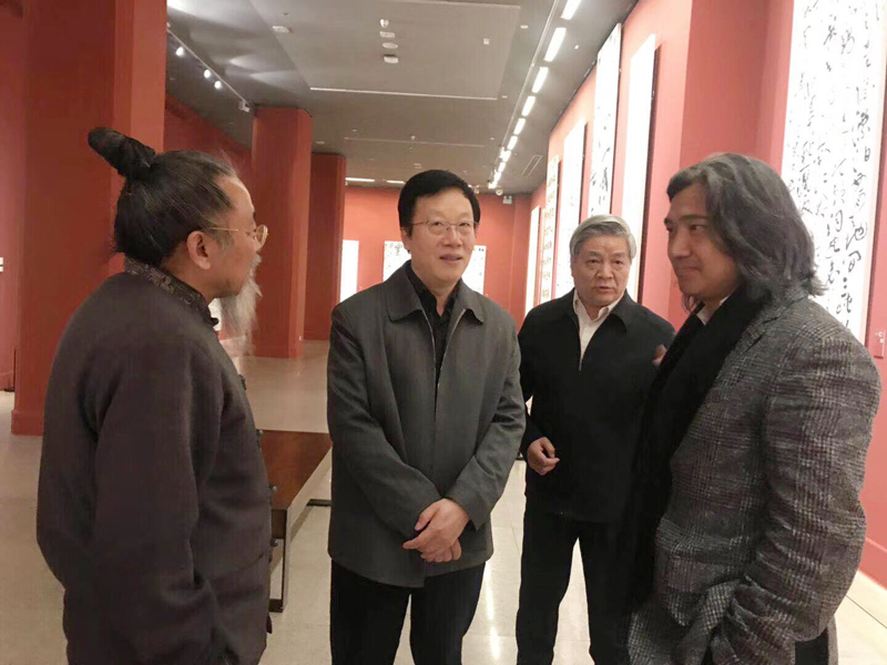 3月23日,全国人大常委会委员、教科文卫委员会副主任、民盟中央专职副主席张平,全国人大常委会委员、民盟中央专职副主席龙庄伟等领导专家莅临中国美术馆beat365官网书法展厅。在校长甄忠义、常务副校长张建敏等陪同下,参观展览并深入交流,对这次书法展给予了高度评价,同时对学校的发展也提出了殷切希望。