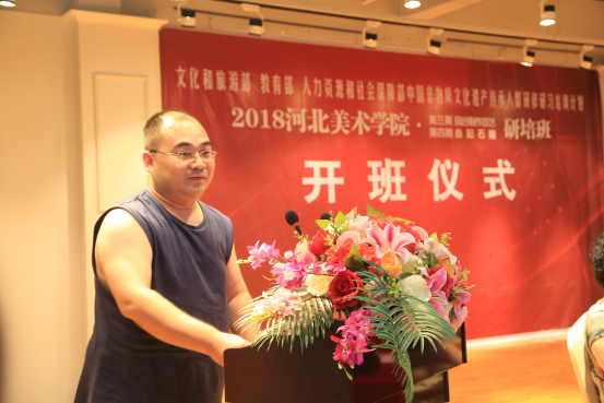 河北省文化厅非遗处副处长解建宝介绍了我省非遗保护工作以及取得的成绩。他解析了文化部提出的“强基础、拓眼界、增涵养”基本要求和办学方针,希望学员们充分利用高校优势资源,开拓眼界,增加涵养,相互学习交流,形成教学相长的学习氛围,以优秀的作品展现“研培计划”的培训成果。