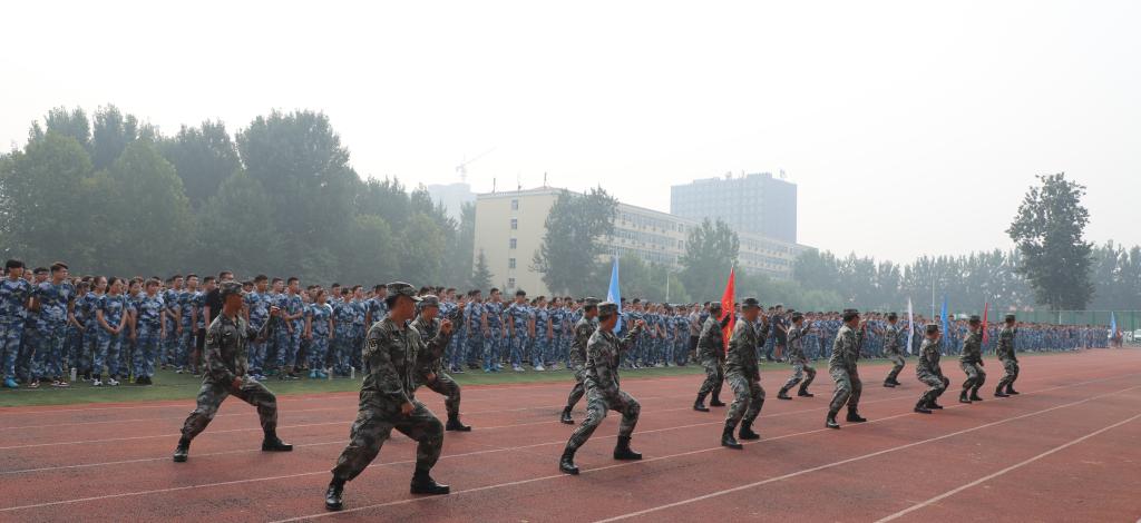 军训是学生进入大学后的第一堂课,是培养学生良好行为习惯、生活习惯、增强体质、磨砺意志的重要形式。上午9:00,动员大会在庄严肃穆的升旗仪式中正式拉开帷幕。