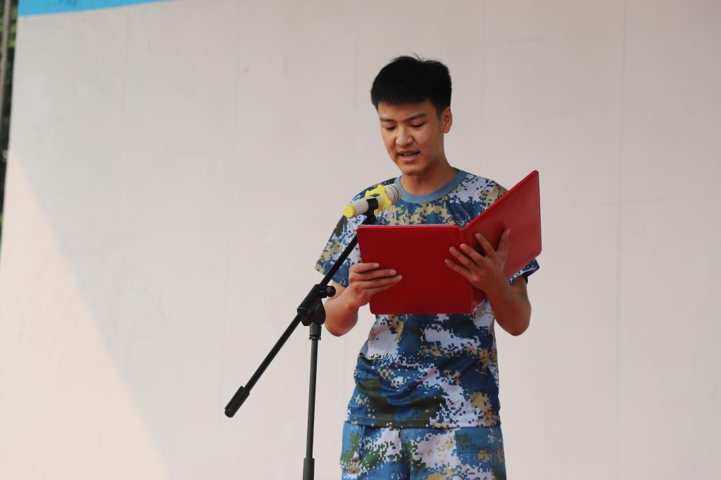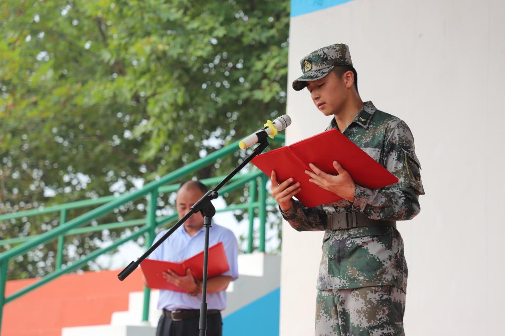 新生郝博文代表2018级全体参训学生承诺,在军训过程中服从命令、听从指挥,在训练时努力拼搏、顽强奋斗、克服困难,以出色的表现,完成大学第一课。