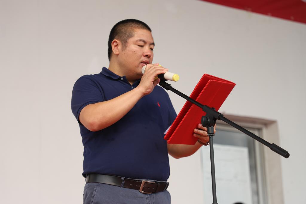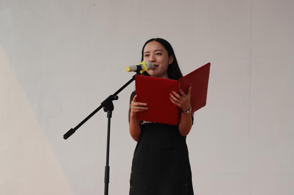 辅导员代表王弯弯发言,表示将认真对待军训工作,与参训学生同吃同住,教育学生继承革命传统,发扬艰苦朴素精神,圆满完成军训工作。