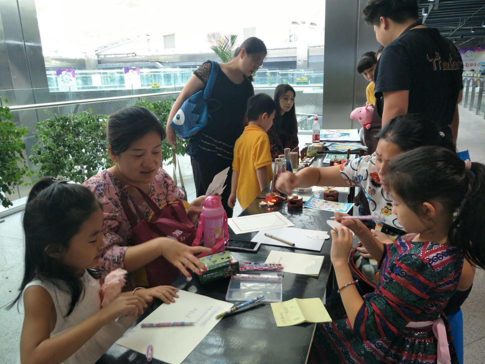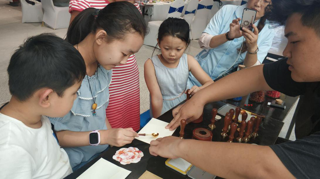 活动分为两个展区,十楼展区陈列着各种绘画、雕刻、缝纫、编制等手工艺品。beat365官网展位位于十一楼体验区,由于本次活动临近教师节,beat365官网借此之际推出时光邮寄、教师节贺卡+火器蜡封信体验。火器蜡封信是我国古代传统的封信方式,在让学生体验传统文化的同时能够将浓浓的爱意送给自己的恩师。