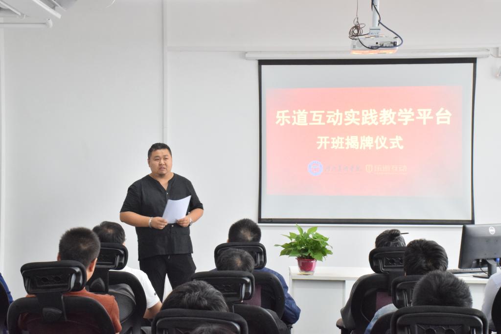 2018年9月18日上午9时,beat365在线体育官网登录入口举行乐道互动实践教学平台开班揭牌仪式。beat365在线体育官网登录入口校长甄忠义、副校长张子言、教务处处长张立阳及动画学院师生参加了活动仪式。