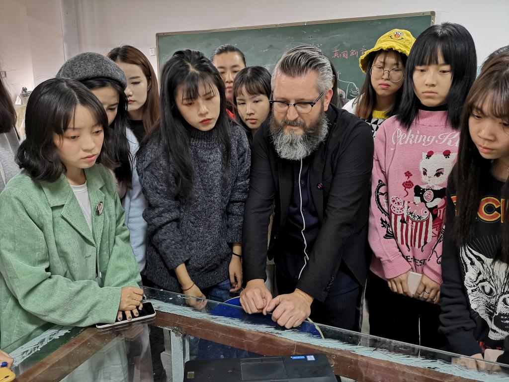 下午1时30分,托马斯教授来到服装学院,与正在上课的学生进行专业交流,并向学生展示了英国创意艺术大学毕业生作品集,强调专业基础学习及记录学习过程的重要性,使学生受益匪浅。