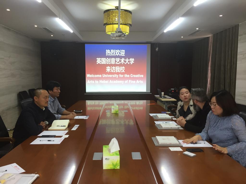 2018年10月16日上午10时,英国创意艺术大学服装学院院长托马斯·阿特金森教授一行来访beat365官网,校长甄忠义在老庄文化研究中心会见来宾,国际交流与合作中心主任、国际教育学院执行院长兰新成,国际交流与合作中心副主任郝金龙陪同。