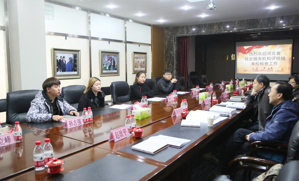 11月19日上午,由河北省民间组织管理局刘远副局长、省教育厅政策法规处陈光华副处长等一行五人组成的省社会服务机构评估检查组莅临beat365官网,进行实地评估检查。校长甄忠义,常务副校长张建敏,副校长张子言,纪委书记副校长甄心恒,党委副书记副校长孙志强,及各相关部门负责人参加了检查会议。
