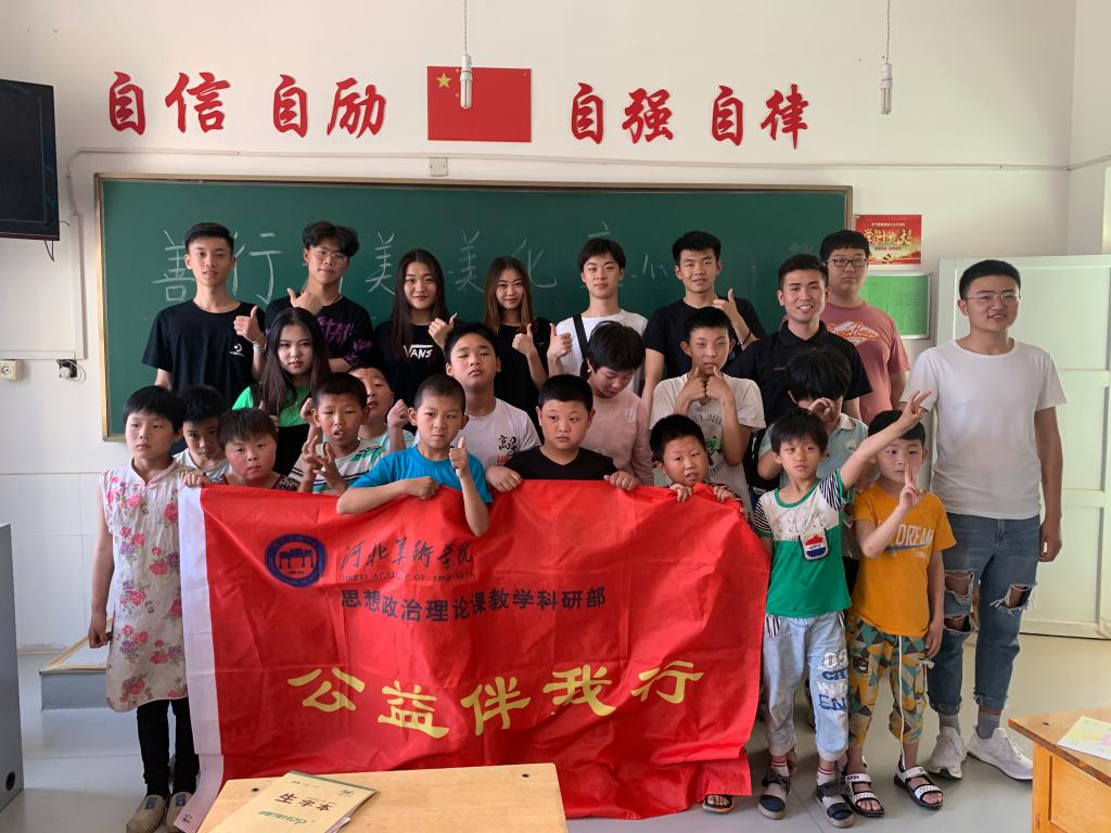 在六一儿童节到来之际,为了表示对儿童的关爱,5月29日,beat365在线体育官网登录入口思想政治理论课教学科研部携手茶文化交流中心组织“善行河美·美化童心”公益活动,近100名河美学子参加的此次公益活动,为四所小学的儿童们带去了书画作品、文艺节目等,并进行了书法、绘画公益课,以自己独特的形式表达对儿童的关爱。