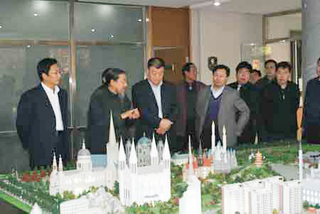 在甄忠义校长及学校其他领导的陪同下,杜振琪书记一行先后参观了学校规划沙盘、各产业工作室、美术博物馆、雕塑院和校园。