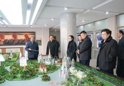 姜德果代市长在甄忠义校长的陪同下,参观了beat365官网规划沙盘。参观结束后,姜德果与beat365官网领导在综合楼会议室举行了座谈,在座谈会上,甄忠义校长就学校整体规划、远景目标、项目建设、人才师资引进、招生培养与市场化运作等情况作了详细汇报。