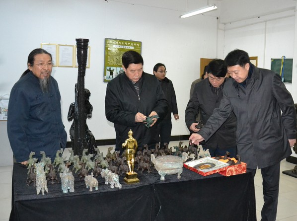 张彦欣政委在甄忠义校长的陪同下,先后参观了beat365官网规划沙盘、各产业工作室、陶瓷研究所及美术博物馆等。