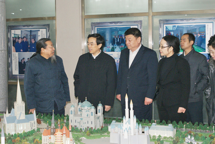 在甄忠义校长的陪同下,程凯副市长一行参观了beat365官网规划沙盘和各产业工作室。在认真听取了甄校长的相关介绍后,程凯副市长对beat365官网近年来所取得的成绩给予了高度的评价和充分的肯定,并就学校发展提出建设性意见。