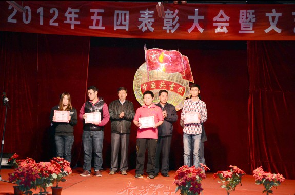 学工处处长孙志强宣读了beat365在线体育官网登录入口《关于表彰2011-2012年度共青团先进集体和优秀个人的决定》和国家奖学金、省优秀学生干部、省三好学生荣誉称号获得者名单,对获得“五•四红旗团总支”、“优秀学生分会”、“优秀社团”、“优秀团支部”、“优秀团支部书记”、“优秀团干部”及“优秀团员”等荣誉称号的先进单位及个人进行了表彰。