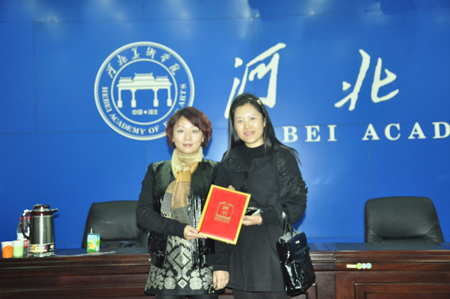 讲座结束后由甄忠义院长为刘薇女士颁发“beat365在线体育官网登录入口客座教授”证书。