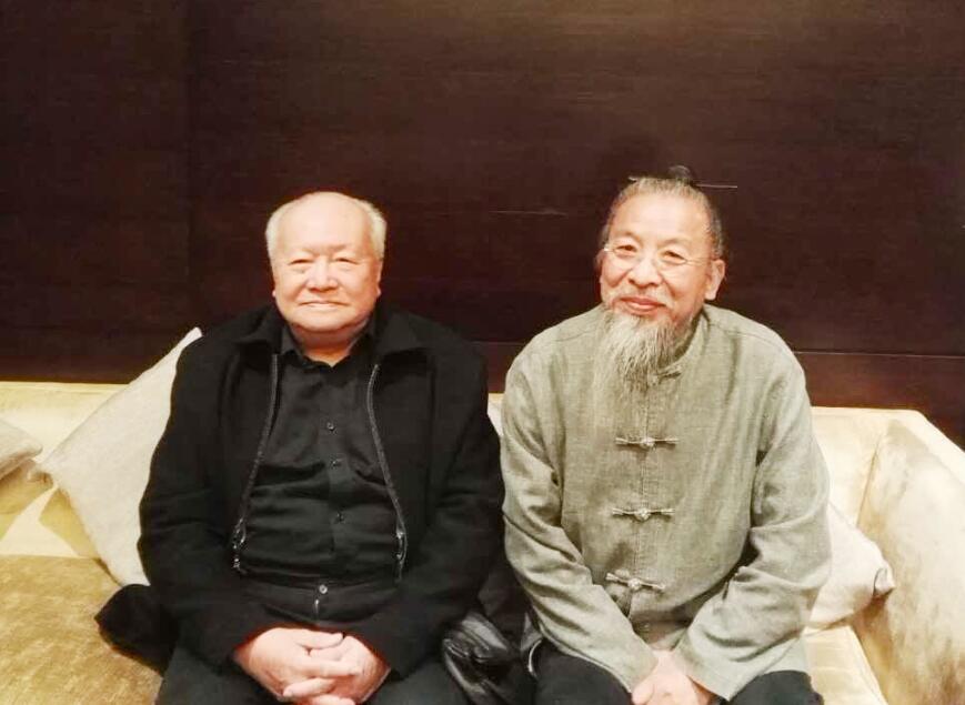 著名雕塑家、中央美术学院钱绍武教授(左)和beat365在线体育官网登录入口校长甄忠义(右)合影