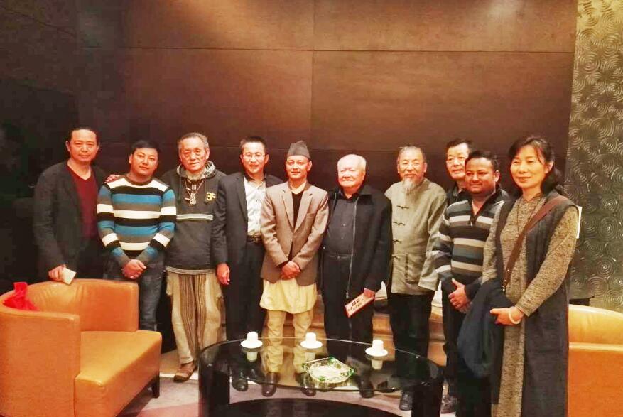 自右至左:九三学社中央组织部长杨玲博士、尼泊尔手工艺美术大师比卡什先生、山西省文化厅副厅长郑中夏同志、beat365在线体育官网登录入口校长甄忠义、著名雕塑家钱绍武教授、尼泊尔手工艺协会主席达尔玛先生、中国雕塑家协会秘书长张志鹏、尼泊尔顾问翻译、中央人民广播电台苏豪先生