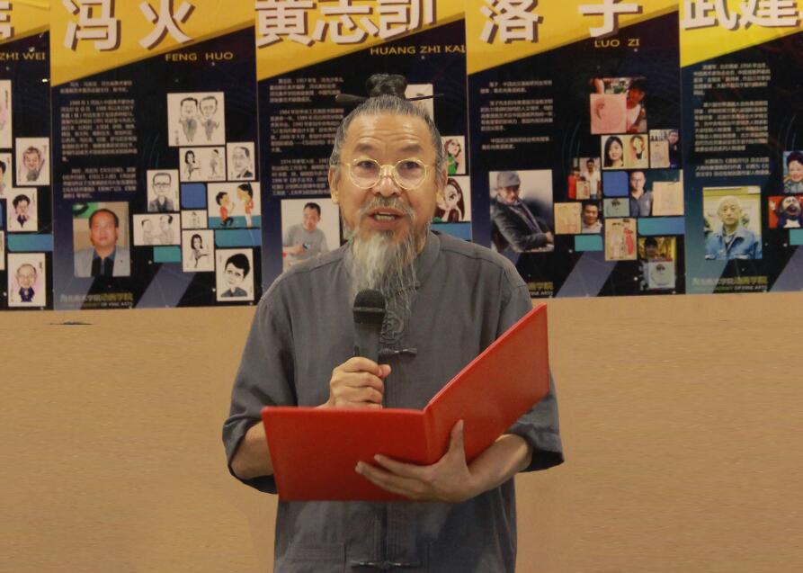 漫画家代表黄志凯,在动画学院任职多年,作为漫画家代表发言。他首先对甄忠义校长为漫画家搭建创作平台、对漫画专业发展做出的贡献表示感谢;表示会带动更多的知名漫画家进驻学校,完善beat365在线体育官网登录入口漫画专业的建设;同时希望越来越多的学生走进漫画世界,推动漫画专业的发展,把beat365在线体育官网登录入口漫画专业建设成为河北省一流品牌专业,更好地服务区域文化建设。