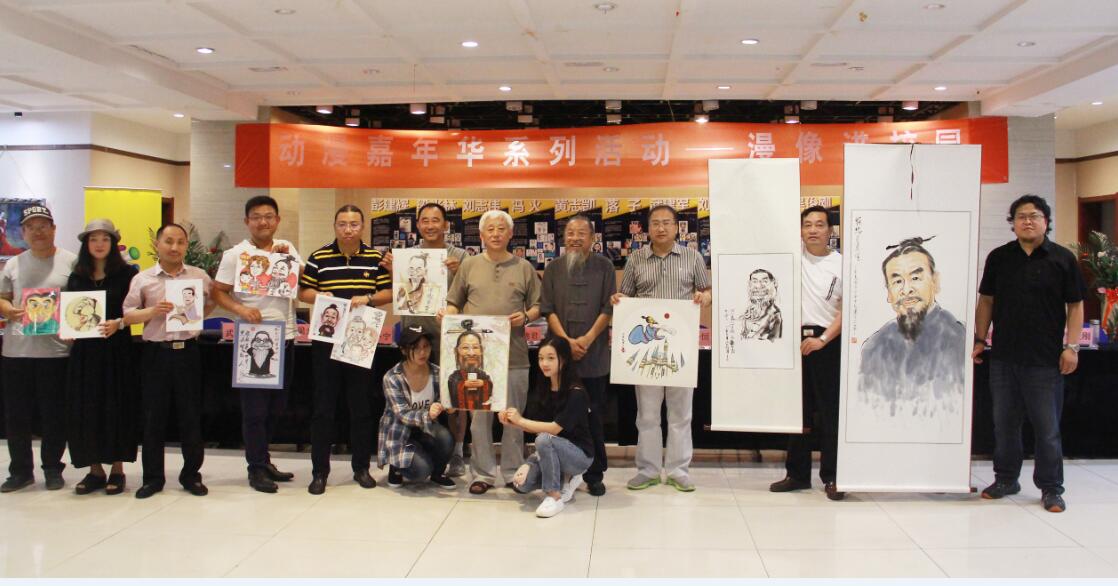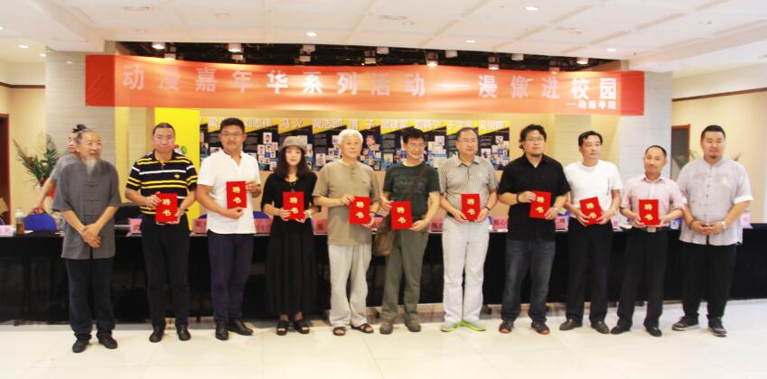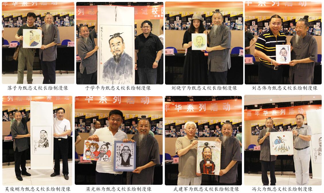 漫画家现场为甄忠义校长赠送漫像,甄忠义校长为漫画家颁发聘书,并集体合影留念。