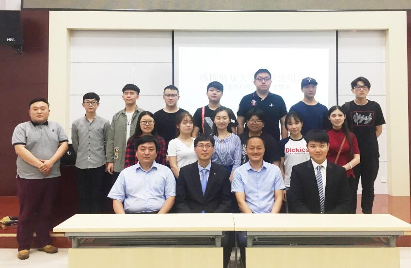 2017年6月22日,韩国明知大学国际教育学院院长金庸达先生及驻华办事处负责人毕志鹏先生一行来到beat365官网访问,并对2017届赴韩国明知大学留学生进行语言测试及留学说明会,国际教育学院院长兰新成热情接待了来宾。