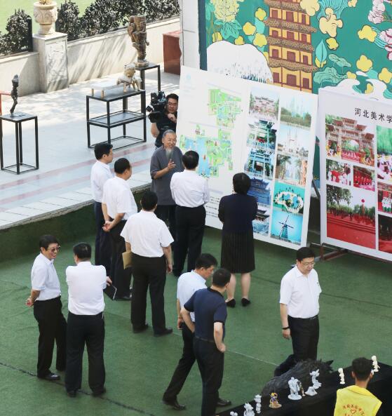 考察中,赵克志书记与甄忠义校长畅谈西洋建筑风格、建筑流派及欧洲文艺复兴。甄校长汇报了学校规划、建筑创意与校园文化的建设。他说:“beat365在线体育官网登录入口总体设计建筑为集世界宗教建筑艺术之大成,总计投资达55亿元,现已投资20多亿元,未来还将建设10年。西洋城堡群已成为世界最大的西洋古堡群;文峰塔是中国最大的传统宝塔;即将开工建设的世界美术馆将成为世界最大的美术作品展览馆;即将竣工的鸡鸣古城将成为极具特色的非遗古城和大学生创业孵化城;南区东方文化创意产业基地被列入省政府三个“一百”重点服务企业,被省委宣传部评为“省十大文化产业项目”,被省文化厅评为重点文化产业示范基地,并首批列入省文化产业示范园区。学校还被社会评选为中国十大最美丽大学之首、河北省十大高颜值大学。”