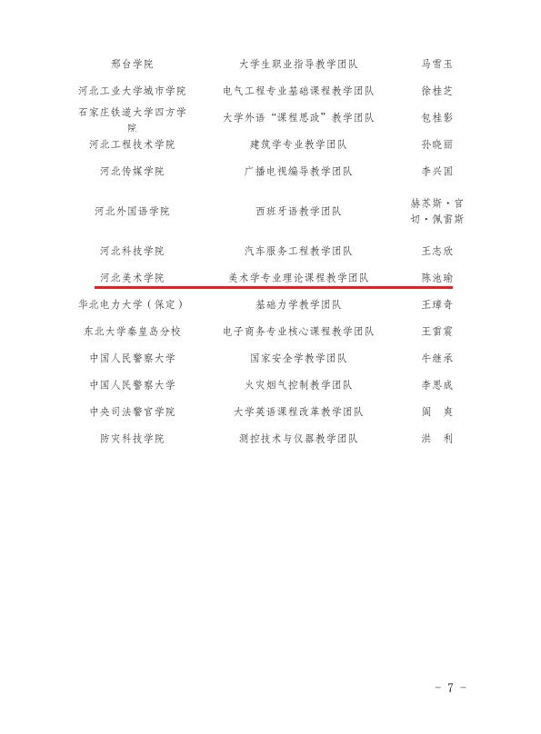 近日,河北省教育厅下发《河北省教育厅关于公布2019 年河北省普通本科院校教学名师和优秀教学团队名单的通知》(冀教高函〔2019〕44 号)。2019年河北省普通本科院校共评出优秀教学团队56个、教学名师63名。beat365官网美术学专业理论课程教学团队获评为河北省普通本科院校优秀教学团队,董小龙副教授荣获2019年河北省教学名师荣誉称号。