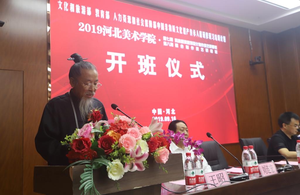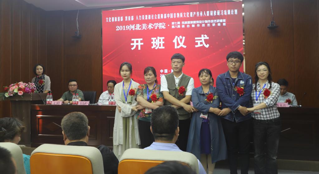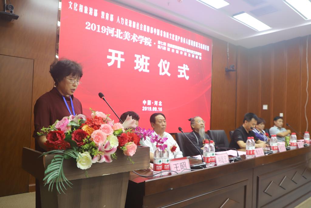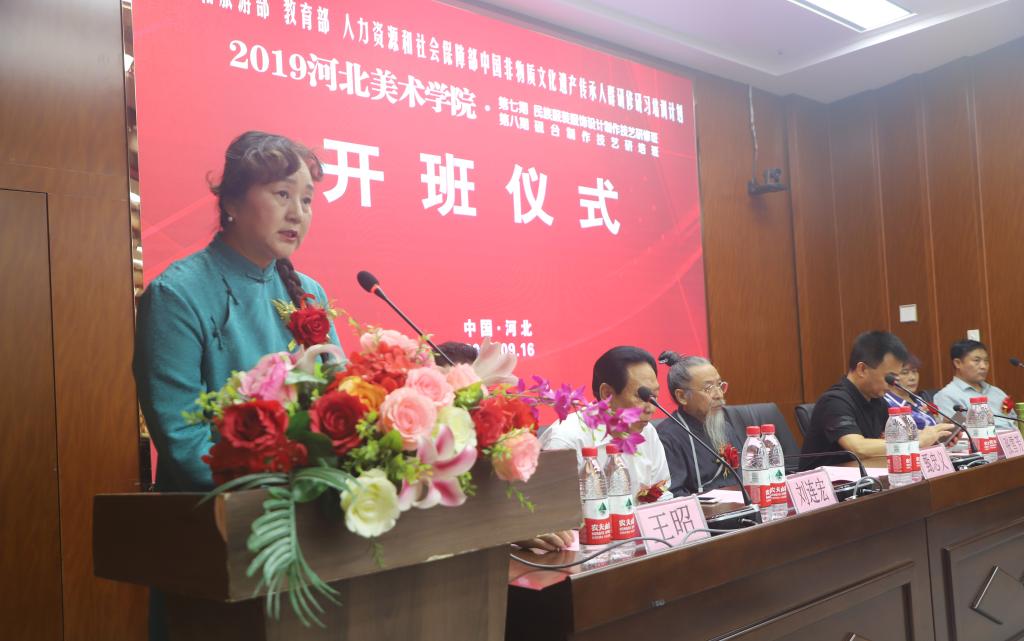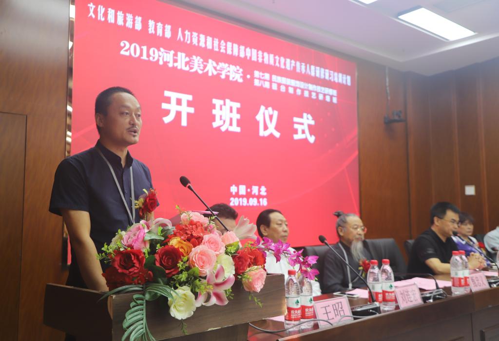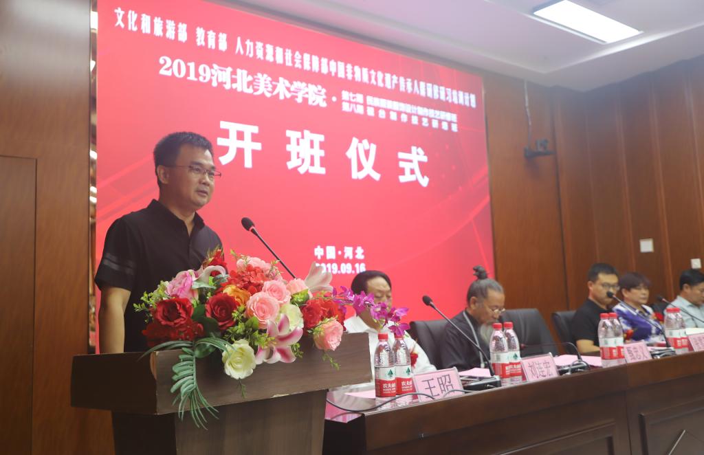 9月16日,“文化和旅游部、教育部、人力资源和社会保障部主办的中国非物质文化遗产传承人群研修研习计划beat365在线体育官网登录入口2019年第七期民族服装服饰设计制作技艺研修班、第八期砚台制作技艺研培班”开班仪式在beat365在线体育官网登录入口城市设计学院学术报告厅启动开班。这次研培得到了河北省文化和旅游厅、河北省教育厅、河北人力资源和社会保障厅及新乐市文化馆的大力支持,是我省今年文化工作的一项重点内容,更是贯彻落实河北省非物质文化遗产保护管理政策的生动实践。