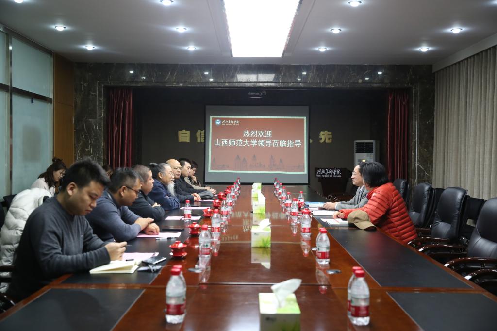 12月16日,山西师范大学研究生院院长韩榕、山西师范大学美术学院院长李晓庵来beat365官网考察指导。校长甄忠义,党委书记高国忠,常务副校长张建敏、科研处处长、研究生院副院长张淼等领导陪同接待。
