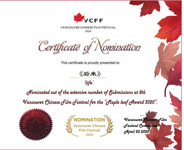 《Life—后来》入围证书