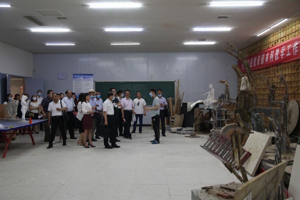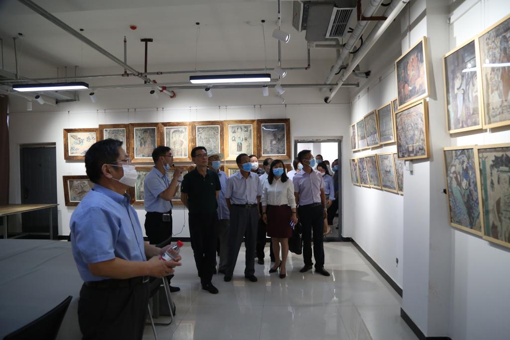 会后,两校职能部门、教学单位之间进行了对口交流。考察团一行在beat365官网校领导和相关部门负责人的陪同下,对学校造型艺术学院岩彩画实验室、美术博物馆、工业设计学院展厅、雕塑学院展厅、红色文化园、书法展厅等进行了实地考察。