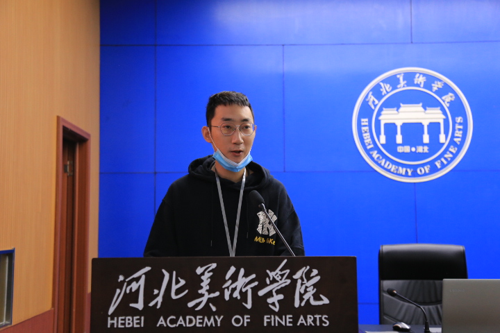 影视艺术学院王宇航代表青年教师发言,表达了对尽快成长的渴望,对导师的感激,以及对做好本职工作的决心。