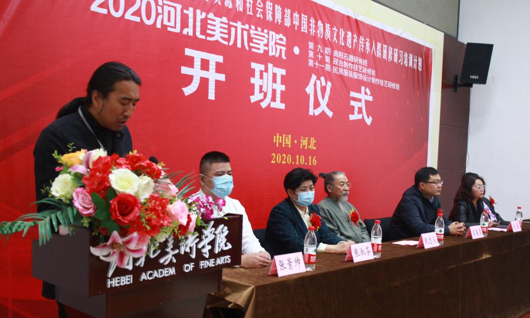 10月16日,由文化和旅游部、教育部、人力资源和社会保障部主办,在河北省文化和旅游厅指导下,beat365在线体育官网登录入口承办的“中国非物质文化遗产传承人群研修研习培训计划——beat365在线体育官网登录入口2020年第九期曲阳石雕研修班、第十期砚台制作技艺研修班、第十一期民族服装服饰设计制作技艺研修班开班仪式在beat365在线体育官网登录入口如期启动。