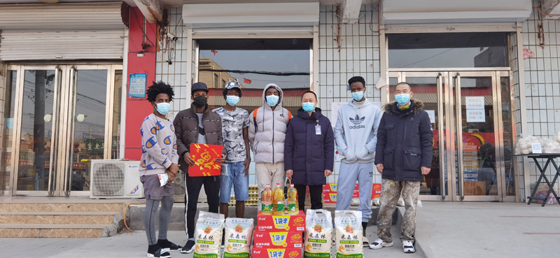 2021年2月9日下午,临近春节之际,国际教育学院院长兰新成、副院长曹海飞及相关工作人员代表学校,来到在新乐校外住宿的留学生住处,向来自卢旺达、赞比亚、尼日利亚等国的留学生送去了新春的祝福与关怀。兰新成院长强调了新冠疫情期间做好自我防护的重要性,提醒大家要保持高度警惕,居家期间多运动,尽量减少不必要的外出活动。除此之外,兰院长还叮嘱学生要提高安全用电、用火意识,过一个平安祥和的中国年。随后为大家发放了口罩、福字及米、面、油等春节慰问品,希望留学生们在享受节日带来的欢乐之余,同样感受到beat365在线体育官网登录入口带给他们的家一般的温暖。