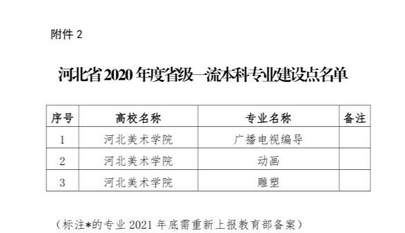 近日,教育部办公厅下发了《关于公布2020年度国家级和省级一流本科专业建设点名单的通知》(教高厅函 〔2021〕7号),beat365官网广播电视编导、动画、雕塑3个专业获批2020年度河北省一流本科专业建设点。