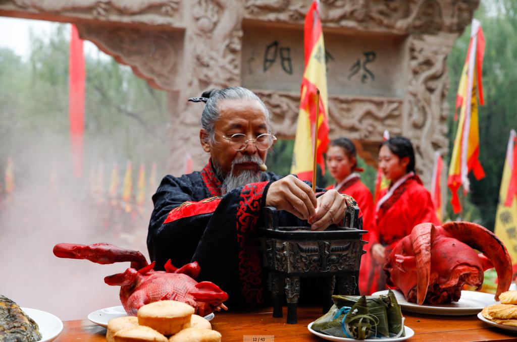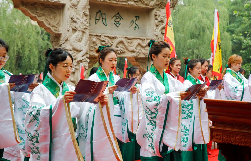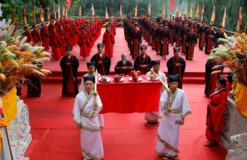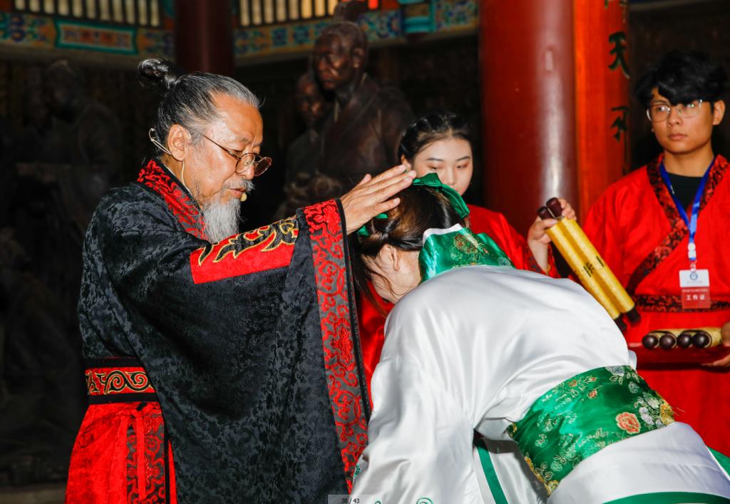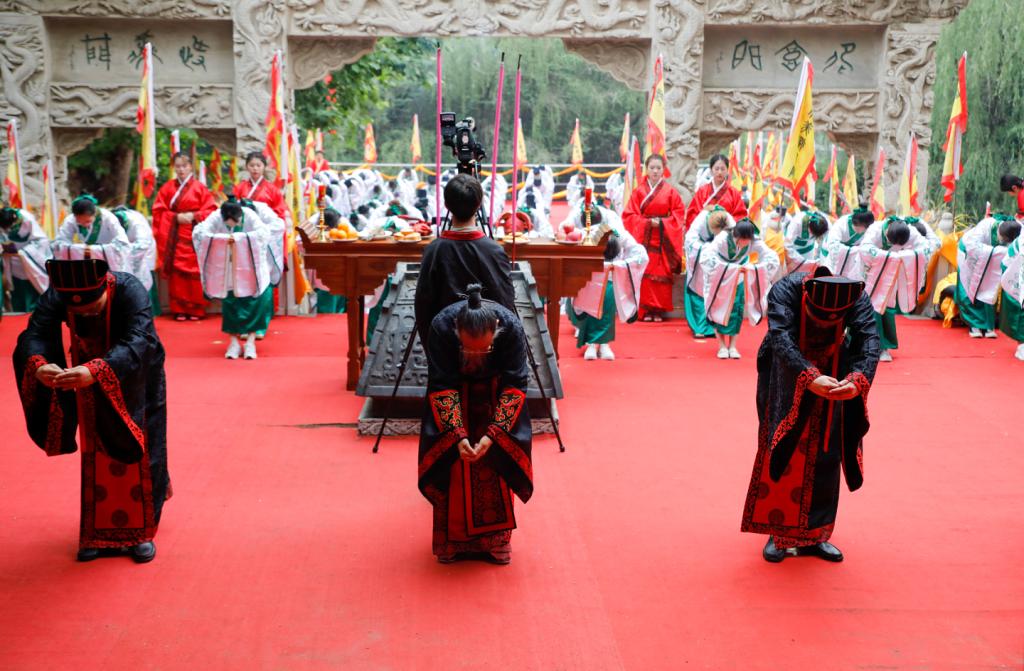 甄忠义校长作为主祭人,行汉礼,随后宣读祭文,敬告圣人。校领导高国忠、张子言、甄心恒、甄墨、孙志强、麻立峰作为陪祭人一 一行汉礼。