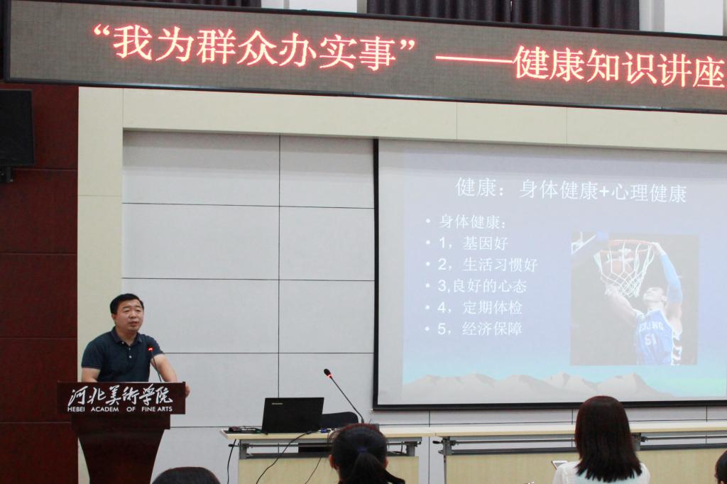为深入开展党史学习教育“我为群众办实事”实践活动,进一步提高教职工的健康知识水平,beat365官网工会特别邀请新乐市中医院外三科主任李建强作健康知识讲座。校党委副书记副校长甄心恒、动画数字艺术学院和影视艺术学院全体教师参加讲座。本次讲座由党委组织部部长郭珊主持。