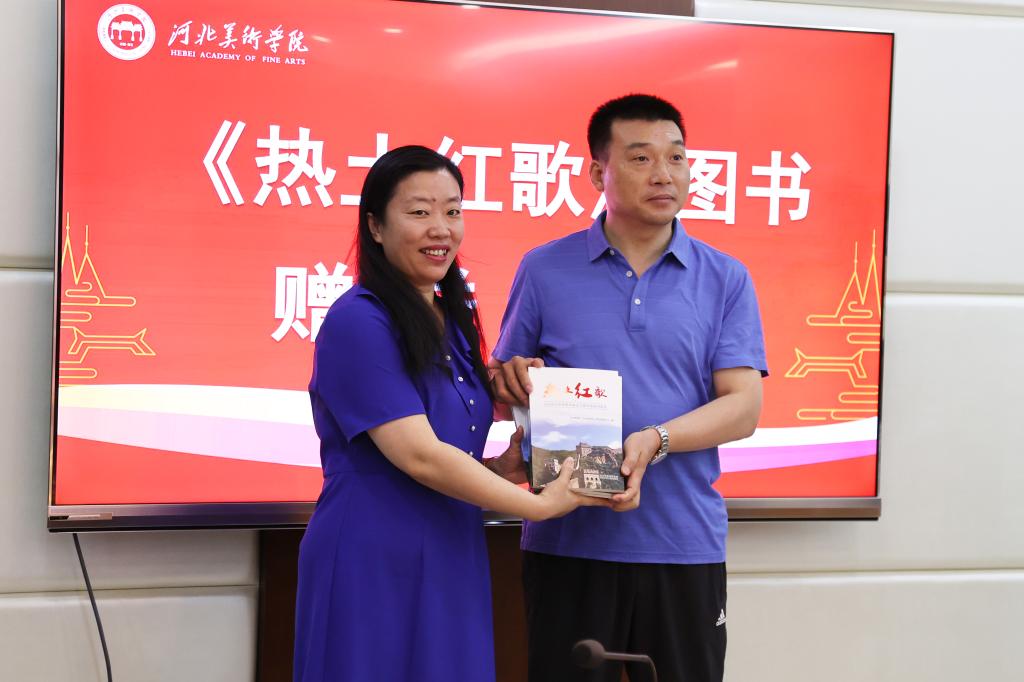 6月23日上午,河北博物院党委委员、副院长徐艳红,党办主任杨昊,教育部主任刘卫华来beat365官网赠送图书《热土红歌》。校领导甄忠义、高国忠、张子言、甄心恒、麻立峰以及相关部门领导、师生代表参加了赠送仪式。仪式由党政办公室主任周哲主持。
