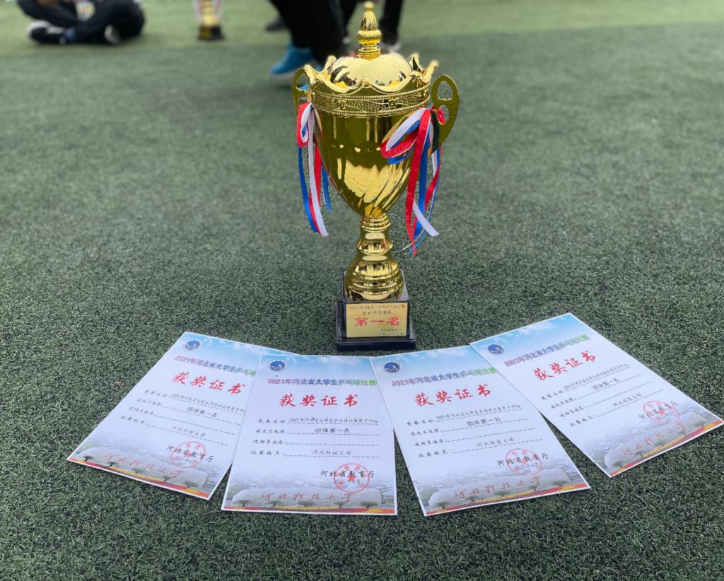 河北省大学生乒乓球男子甲组冠军奖杯及获奖证书